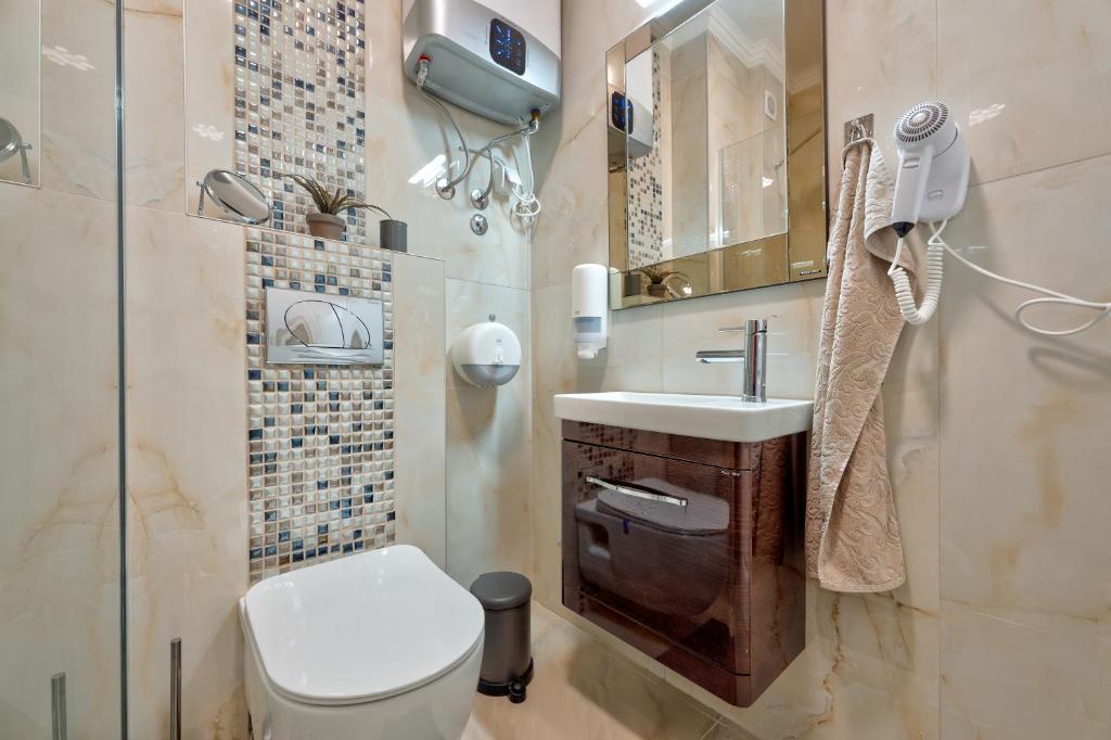 tuš, fen za kosu, besplatni toaletni pribor, kada ili tuš, peškiri, toalet papir, šampon, sapun za telo