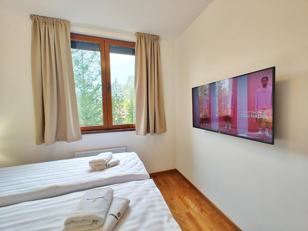 This apartment features a hot tub and a sauna. The apartment's kitchen is available for cooking and storing food. Boasting a terrace with garden views, this apartment also features a washing machine and a flat-screen TV. The unit has 2 beds.