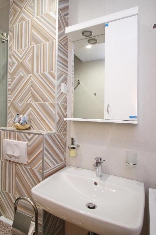 čitava jedinica se nalazi u prizemlju, gornji spratovi su dostupni samo stepenicama, niski lavabo