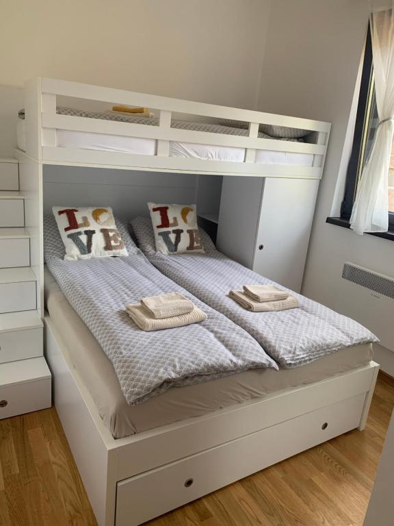 krevet na rasklapanje, utičnica pored kreveta