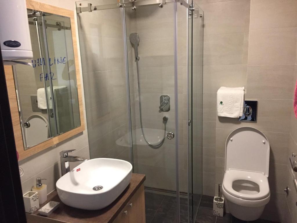 tuš, fen za kosu, besplatni toaletni pribor, toalet, papuče, kada ili tuš, peškiri, toalet papir, tuš bez praga
