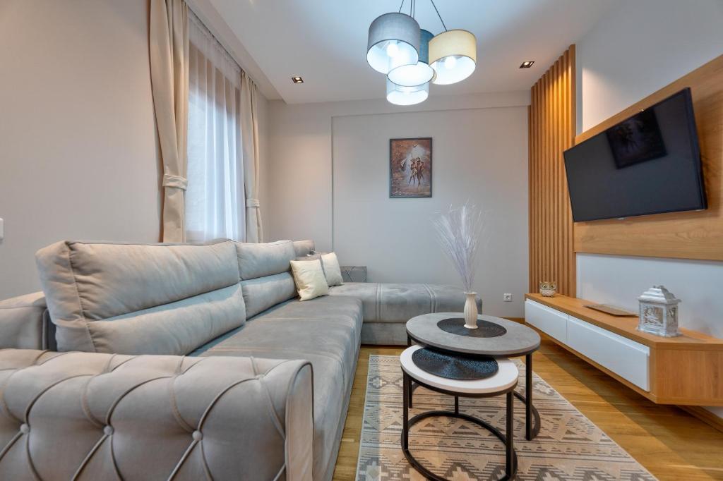 Featuring a private entrance, this apartment consists of 1 living room, 1 separate bedroom and 1 bathroom with a shower and a hairdryer. Meals can be prepared in the kitchen, which is equipped with a stovetop, a refrigerator, kitchenware and an oven. Boasting a terrace with mountain views, this apartment also provides a washing machine and a flat-screen TV with cable channels. The unit offers 2 beds.