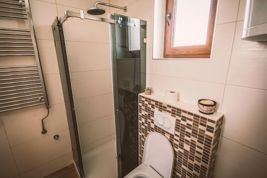 tuš, fen za kosu, besplatni toaletni pribor, papuče, kada ili tuš, peškiri/posteljina (uz doplatu), peškiri, toalet papir, tuš bez praga, šampon, sapun za telo