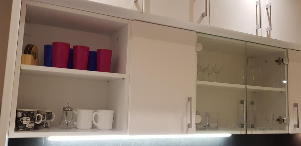 čajna kuhinja, frižider, kuhinja, električno kuvalo, posuđe, rerna, ploča za kuvanje, toster, sredstva za čišćenje, sto za ručavanje, čaše za vino