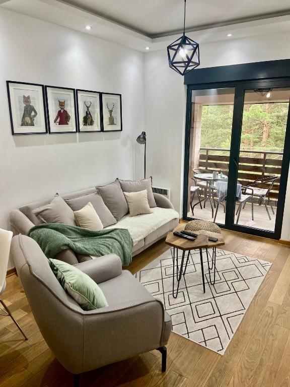 Featuring a private entrance, this apartment consists of 1 living room, 1 separate bedroom and 1 bathroom with a shower and a hairdryer. Guests can make meals in the kitchen that is equipped with a stovetop, a refrigerator and kitchenware. Boasting a terrace with garden views, this apartment also provides a seating area and a flat-screen TV with cable channels. The unit offers 2 beds.