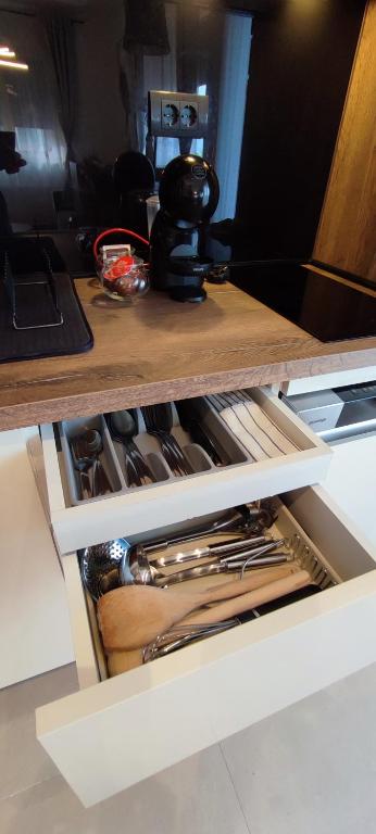 frižider, mikrotalasna rerna, mašina za pranje sudova, mašina za pranje veša, kuhinja, električno kuvalo, posuđe, mašina za sušenje veša, rerna, ploča za kuvanje, toster, sredstva za čišćenje, aparat za kafu, sto za ručavanje, čaše za vino