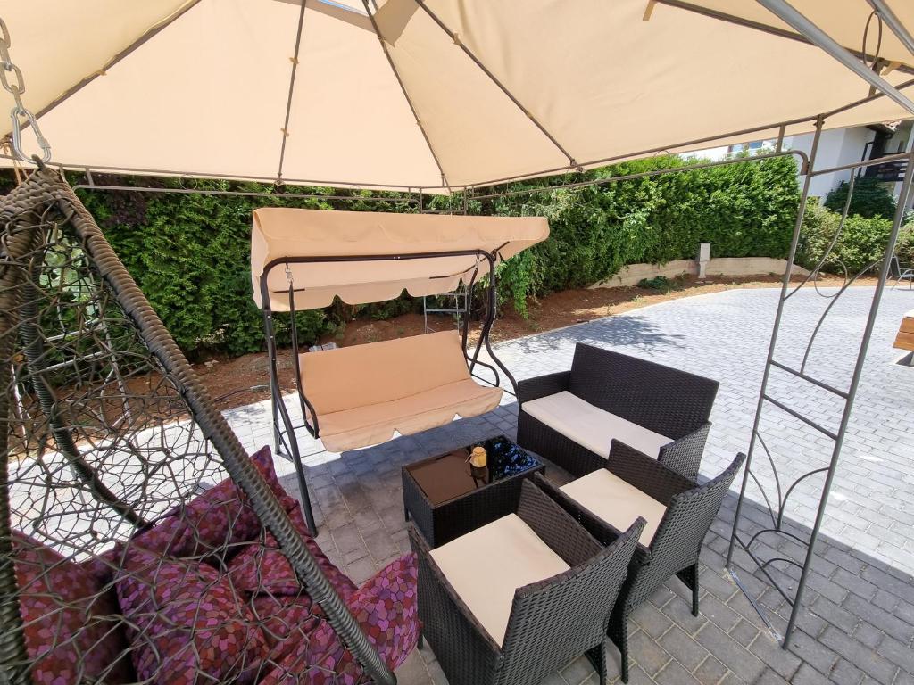 balkon, popločano dvorište, sopstveni bazen, terasa, nameštaj za dvorište