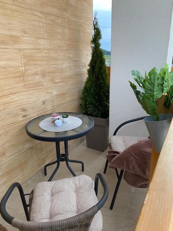 This apartment includes 1 living room, 1 separate bedroom and 1 bathroom with a shower and a hairdryer. In the well-equipped kitchen, guests will find a stovetop, a refrigerator, kitchenware and an oven. Boasting a terrace with mountain views, this apartment also offers a wardrobe and a flat-screen TV. The unit has 2 beds.