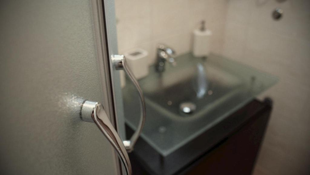 čitava jedinica se nalazi u prizemlju, gornji spratovi su dostupni samo stepenicama, niski lavabo, stolica u tuš kabini