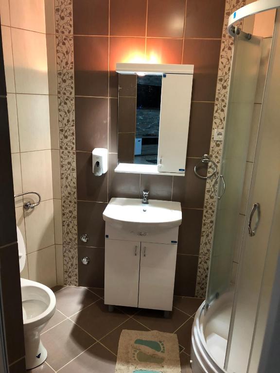tuš, fen za kosu, toalet, papuče, kada ili tuš, peškiri, toalet papir, tuš bez praga, šampon, sapun za telo